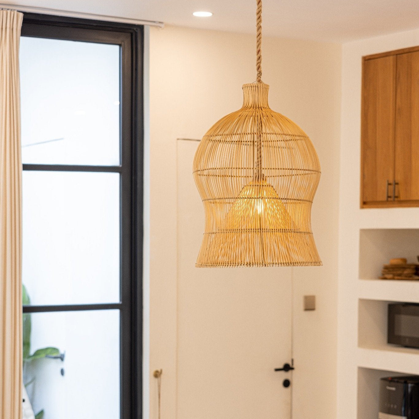 Die Rattan Lampe Ayuna vereint fein gewebtes Naturmaterial mit klarer, harmonischer Form. Jedes Stück wird handgefertigt und ist ein Unikat, das warme Atmosphäre und Struktur in jeden Raum bringt – egal ob über dem Essbereich, in offenen Wohnbereichen oder überall dort, wo ein stilvoller Blickfang gewünscht ist.