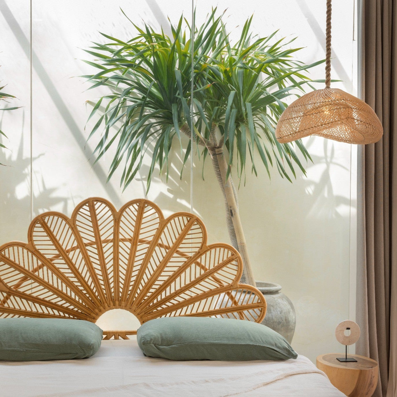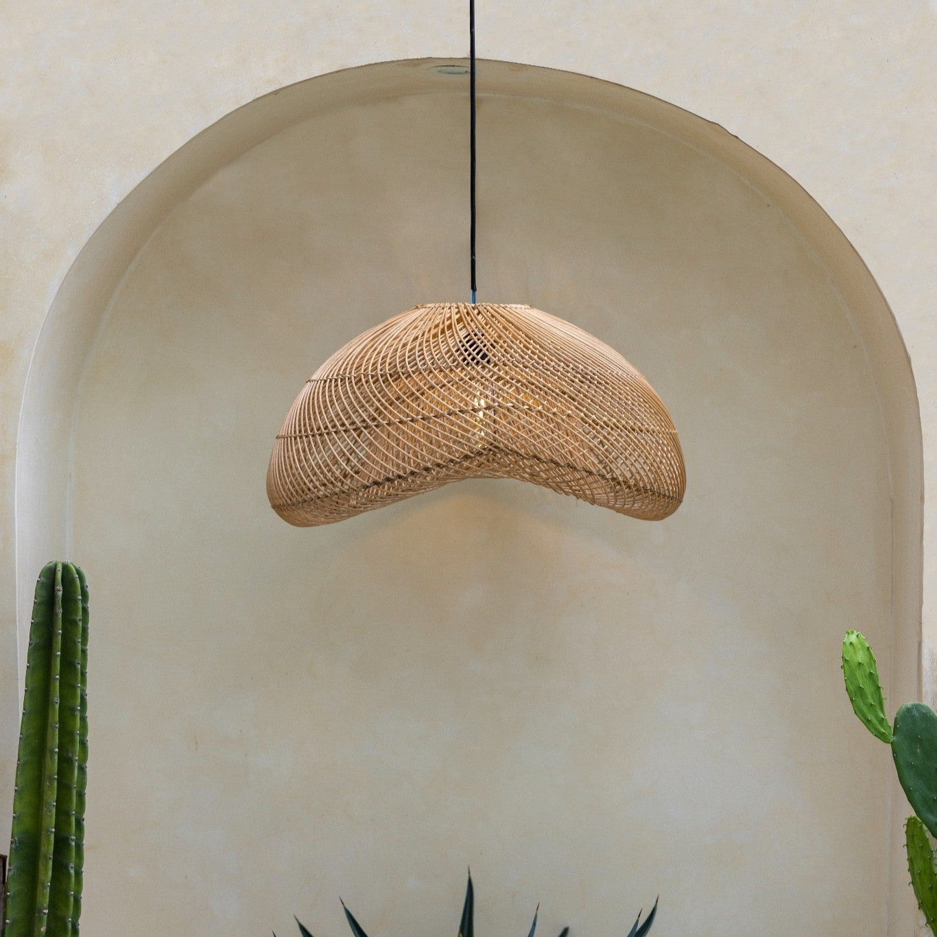 Mit seiner weichen Silhouette und der geflochtenen Rattanstruktur wird der Bayu Lampenschirm zum organischen Blickfang. Die Boho Lampe aus Rattan verleiht Räumen eine warme, natürliche Ausstrahlung und schafft eine entspannte Atmosphäre.